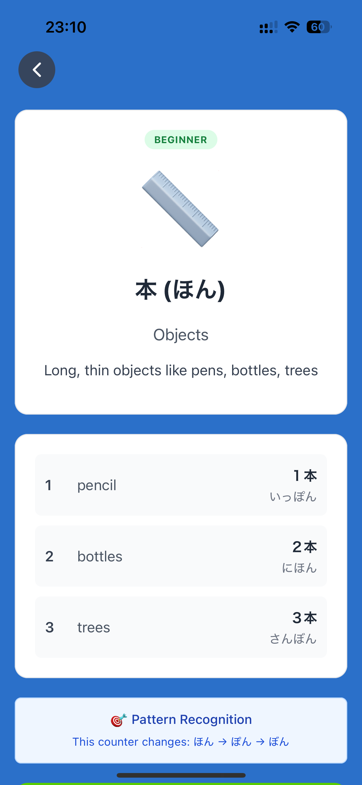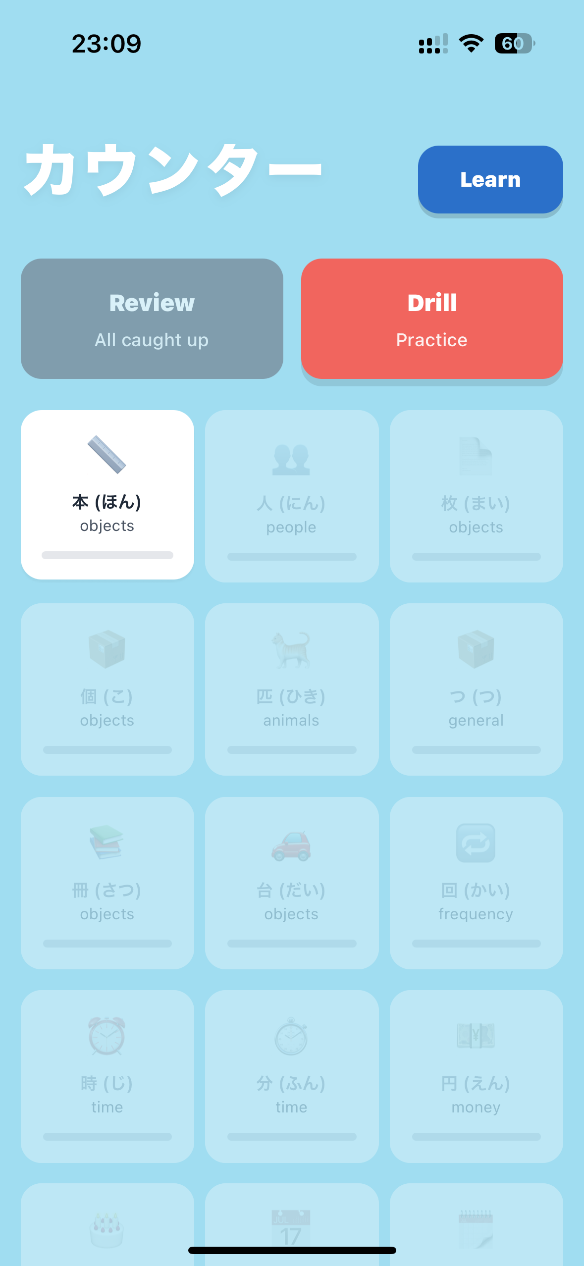 A focused Japanese counter (助数詞) review app born from personal frustration — counters don't fit neatly into standard SRS vocab decks, and with hundreds of them it's easy to blank on whether two birds is 二羽 or 二匹. Kaunta brings dedicated SRS-powered learning and drill practice to finally nail them down.
